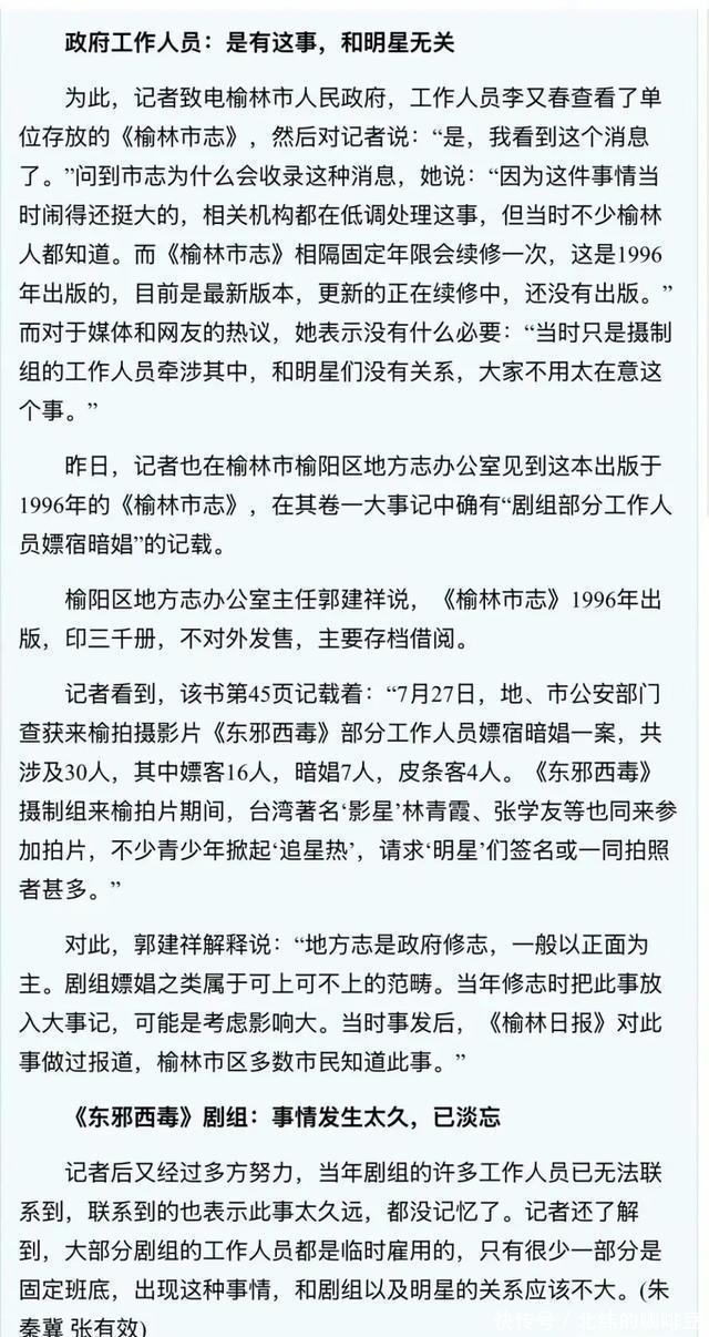这个数字不是空口胡说,是写进了地方志、被记者翻拍、官方承认的。 16个嫖客,7个暗娼,4个皮条客,剩下的……自行脑补。 当年这事被媒体低调处理,剧组回应的关键词是: “忘了”“临时工”“不重要” 。 可网友怎么可能放过?